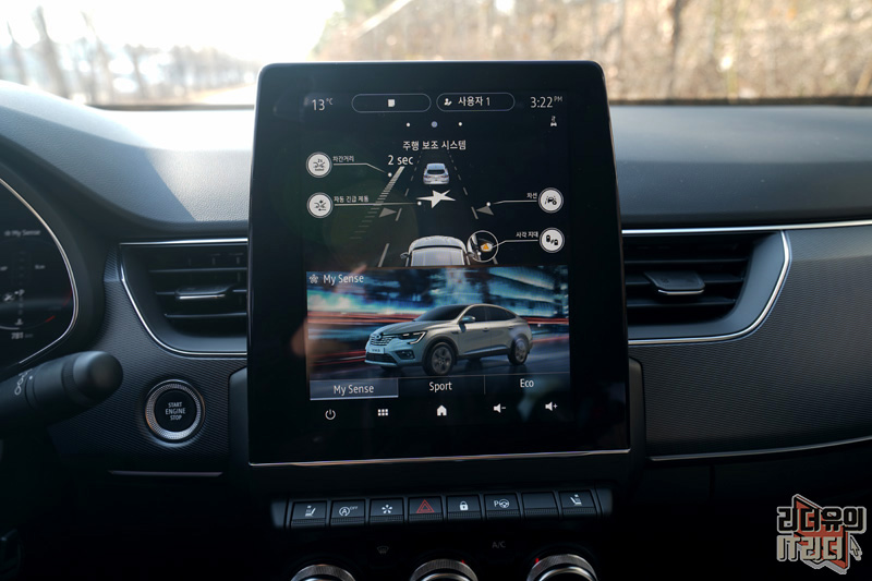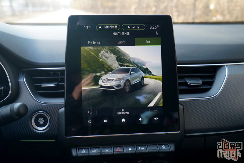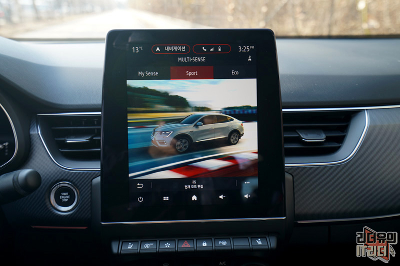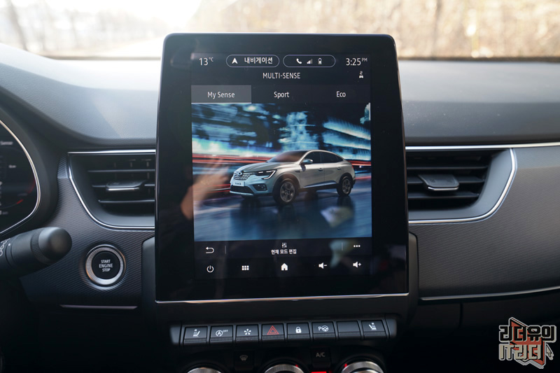 드라이빙 모드를 선택할 수 있는 멀티센스에는 르노삼성 XM3 이미지와 함께 멋진 화면을 보여주고 있습니다.