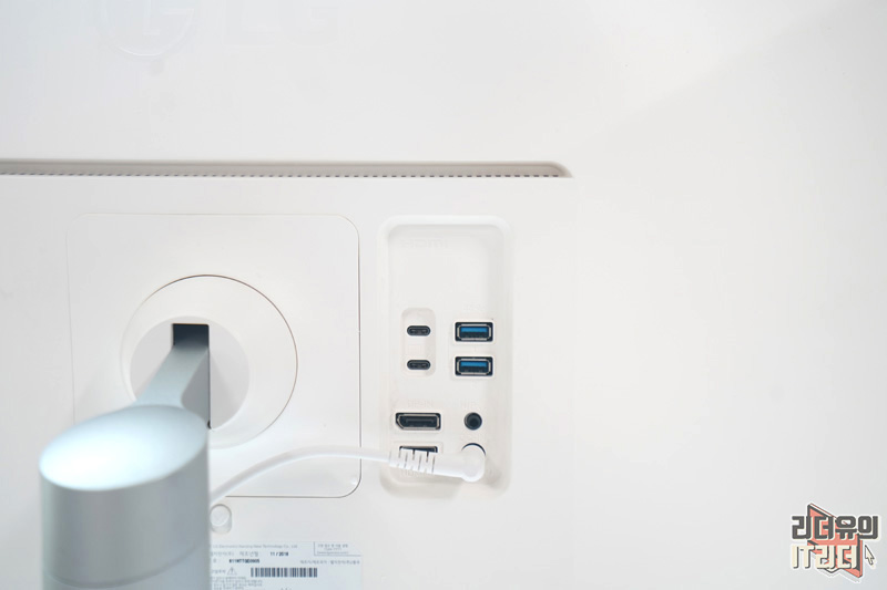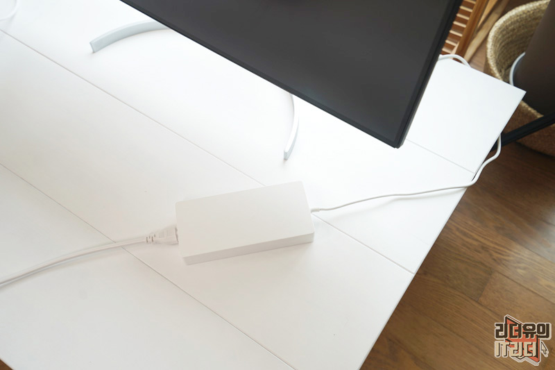 전원 어댑터는 깔끔한 화이트 색상으로 되어 있습니다. 인테리어 부분까지 잘 고려하고 나온 LG 울트라HD 모니터 32UL950 임을 알 수 있습니다.