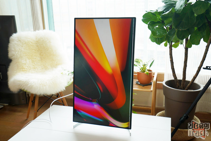 피벗 기능도 지원해 세로 화면이 필요한 분들에게 매력적인 모니터 입니다. 다만 맥이 세로 화면을 자체적으로 지원하지 않기 때문에 맥북프로에서 세로화면을 보고 싶다면 별도의 앱을 사용해야 합니다.