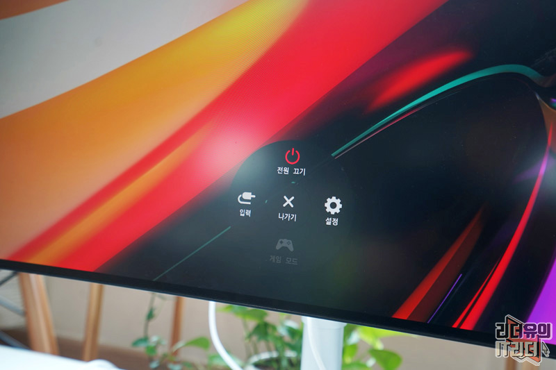 LG 울트라HD 모니터 32UL950 가운데 하단을 보면 설정 메뉴 버튼이 있습니다.