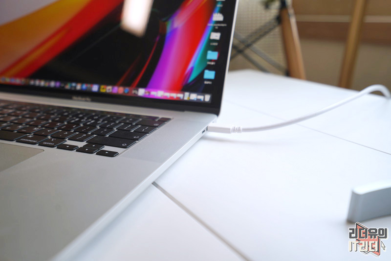 나갈때 맥북프로만 빼서 나가면 되고 집에 오면 맥북프로만 케이블에 연결하면 대화면으로 사용하면서 충전까지 할 수 있는 최적의 사용 환경이 됩니다.