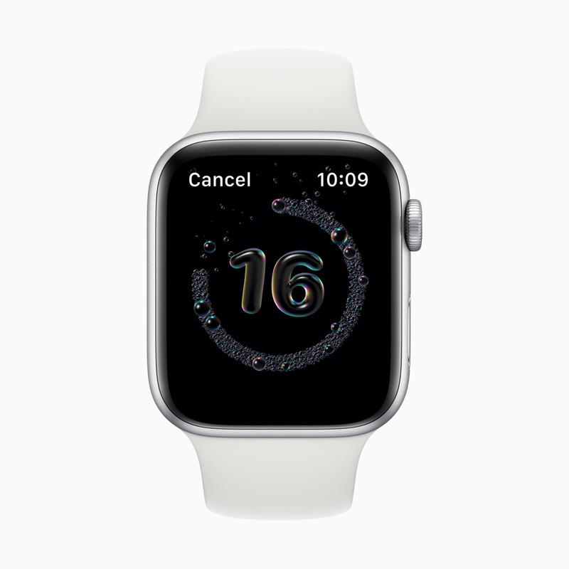 코로나19 사태로 손씻기의 중요성이 많이 알려졌습니다. 손은 최소 20초간 씻으면 질병 확산을 방지할 수 있다고 하는데요. 이번에 애플워치는 웨어러블 사상 최초의 혁신 기능으로 자동 손씻기 감지가 들어갔습니다. 애플워치의 동작센서, 마이크, 온디바이스 머신 러닝을 사용해 손을 씻는 움직임과 소리를 자동 감지하게 됩니다. 그리고 20초 타이머가 시작되고 사용자가 그보다 빨리 멈추면 손을 좀 더 씻도록 안내하게 됩니다.