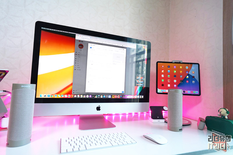 작동이 되면 아래쪽에 블루색 LED로 현재 기기 상태를 알 수 있습니다. 은은한 LED가 고급스럽습니다.