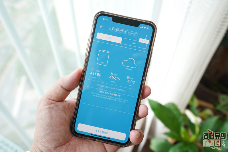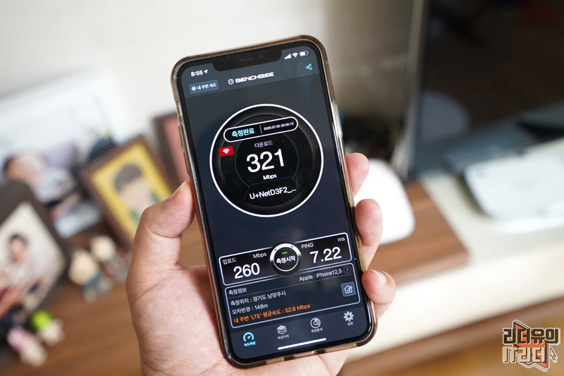 집에 들어오는 인터넷 망은 최대 500Mbps 속도를 내는 회선입니다. 기본 공유기로 속도 체크를 하니 다운로드 321Mbps, 업로드 260Mbps가 나왔습니다.