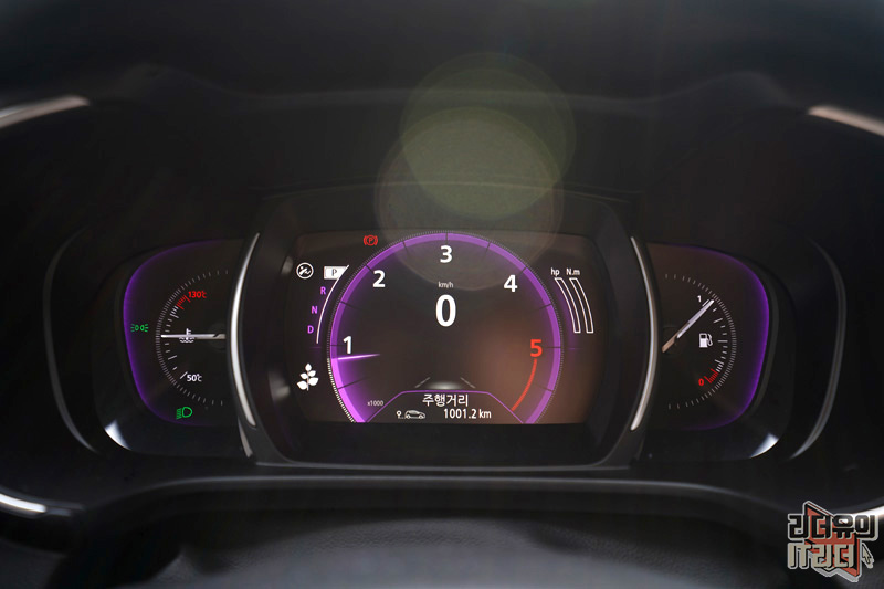 클러스터는 가운데 부분만 디지털로 되어 있습니다. 엠비언트 라이트 색상에 따라 계기판 색상이 달라지는 매력이 있습니다. 하지만 최신의 차들에 비하면 다소 아쉽게 보이는 화면입니다.