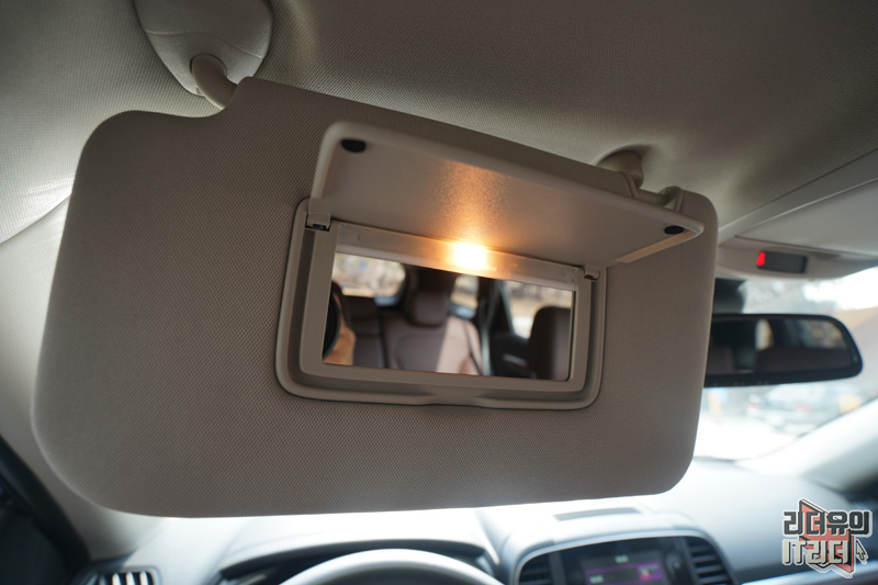 햇빛 가리개를 내리면 덮개가 있는 유리가 있습니다. 조명도 들어옵니다.