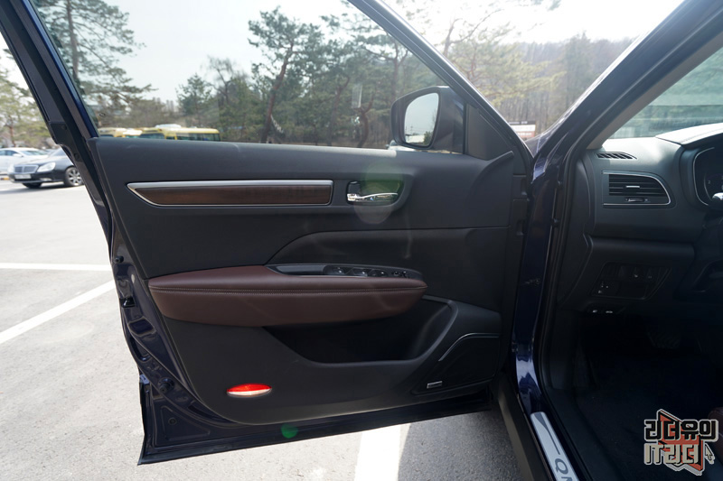 르노삼성 QM6 QM6 1.7 RE 시그니처 운전석 도어의 모습입니다. 특별한 부분은 없지만 투톤으로 세련된 디자인을 느낄 수 있습니다. 옆에는 포켓이 있어 음료수 같은 것을 넣을 수 있습니다.