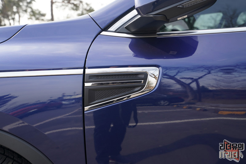 르노삼성 QM6 마이센 블루의 옆모습입니다. 블루색이라고 하면 좀 과하지 않을까 생각이 들 수 있는데요. 톤이 낮은 블루색이라 너무 튀지 않으면서 밝은 이미지를 느낄 수 있습니다.