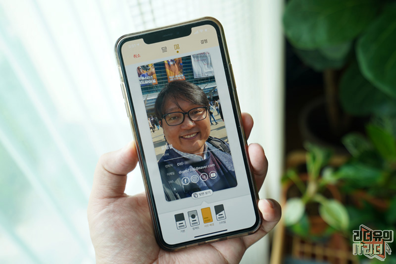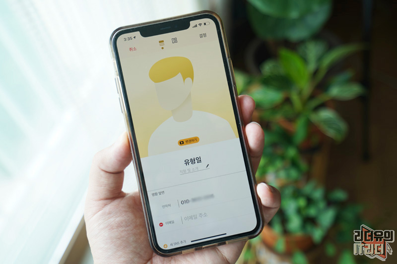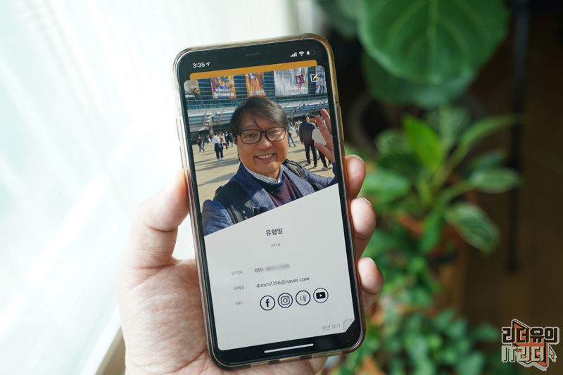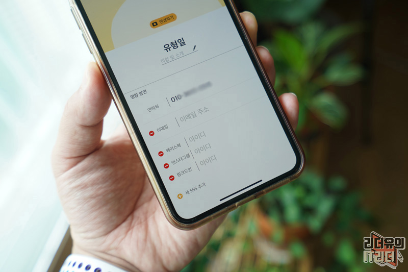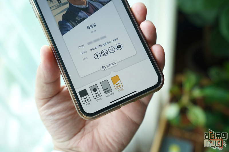 명함은 자신의 연락처를 기본 설정으로 만들어 지게 됩니다. 사진을 선택해서 넣을 수 있고 이메일과 다양한 SNS를 넣을 수 있습니다. 페이스북, 인스타그램, 블로그, 링크드인, 유튜브 채널까지 넣을 수 있어 자신을 잘 보여줄 수 있습니다.