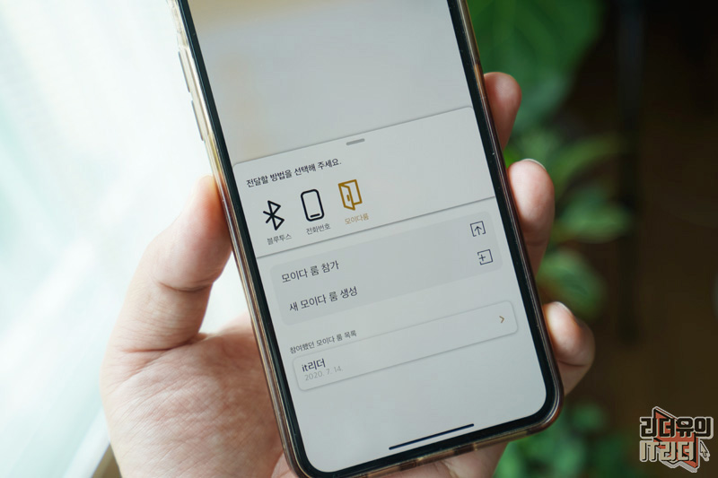 공유방법은 블루투스, 전화번호, 모이다룸으로 할 수 있습니다. 특이한 점은 모이다룸인데요. 모임마다 그룹핑을 해서 연락처 관리를 할 수 있는 기능입니다.