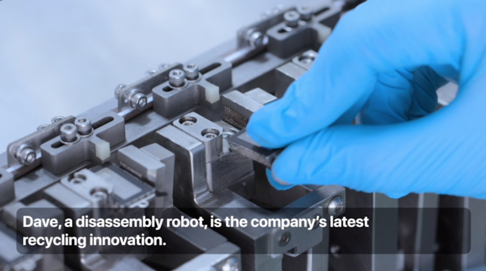 애플이 최근 도입한 재활용 혁신 로봇 'Dave'도 공개했습니다. 애플의 아이폰 분해 로봇 '데이지'의 후속작인데요. '데이브'는 아이폰 Taptic Engine을 분해해 희토류 자석과 텅스텐 등의 핵심 소재는 물론 강철 소재도 회수할 수 있게 한 로봇입니다.