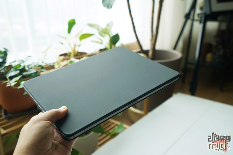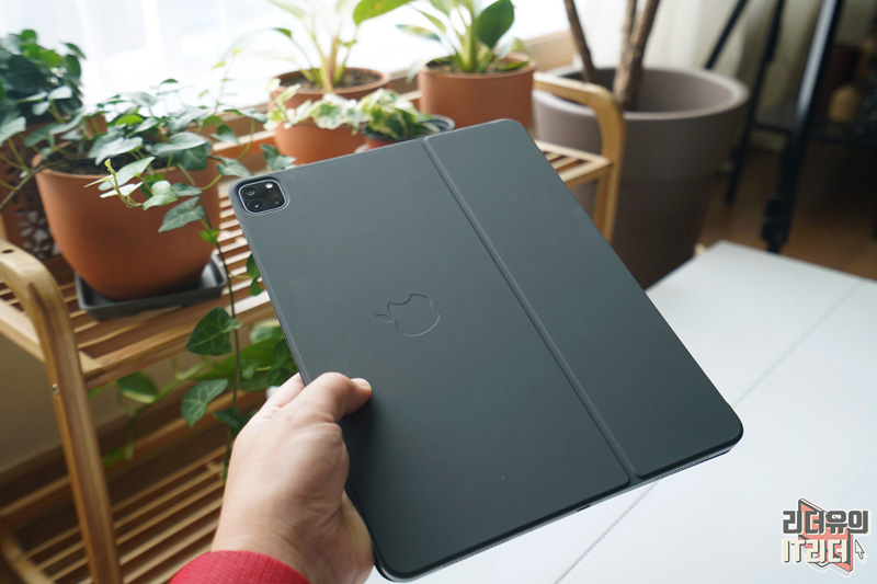 휴대할때는 이렇게 케이스처럼 사용하면 됩니다. 아이패드 프로 4세대가 워낙 슬림하게 나와서 가방에 짐을 많이 넣고 넣으면 눌려서 휠 수 도 있는데요. 이렇게 키보드가 보호를 해주니 더 안심하고 휴대할 수 있습니다.