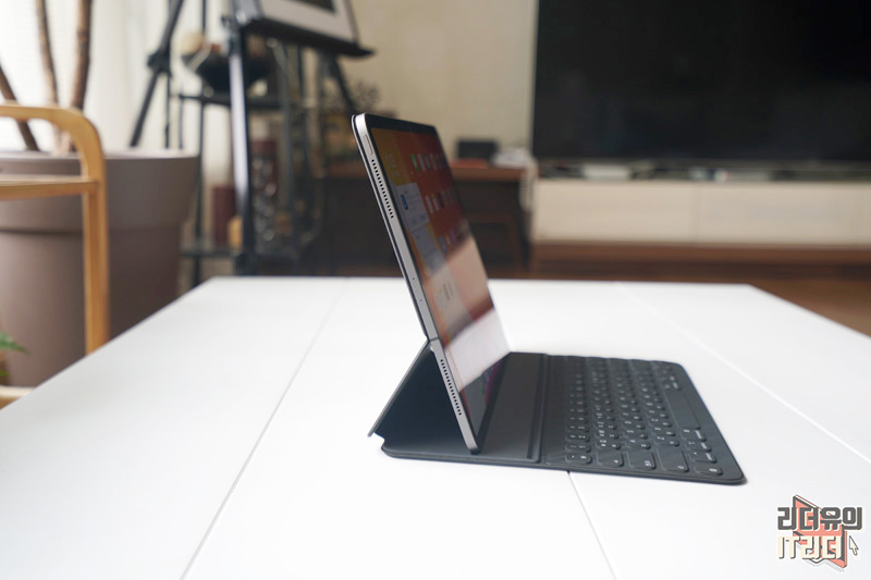 아이패드 프로 4세대를 세워서 거치하는 화면입니다.