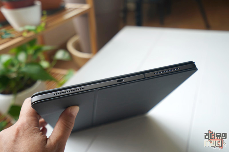 그리고 완벽한 일체감을 보여주고 있습니다. 서드파티 키보드는 아이패드 프로 4세대를 감싸주는 방식으로 되어 있고 페어링이 필요한 경우도 있습니다. 아이패드 프로 4세대의 테두리 라인을 그대로 보여주는 부착 방식이라 가장 슬림하고 가벼운 키보드 사용을 할 수 있습니다.