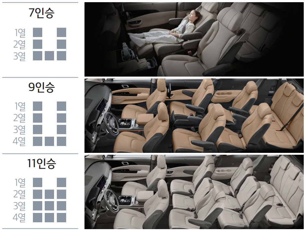2열시트, 3열시트, 4열시트 구성입니다. 얼마나 긴지 감이 오시죠?