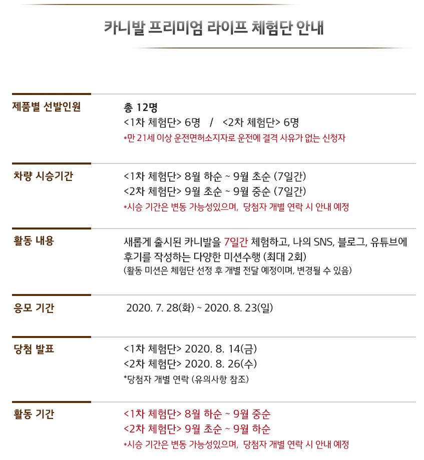 1차, 2차로 이루어지고 시승기간이 7일이나 되니 미리 경험해 보고 싶은 분들에겐 좋은 기회가 될 것입니다.
