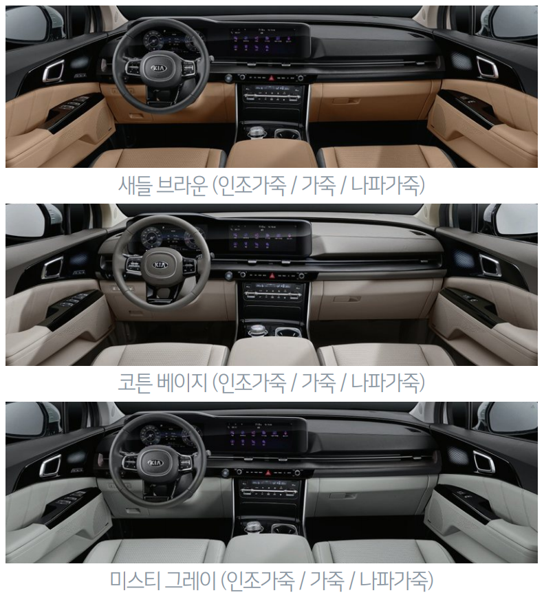 4세대 카니발 풀체인지 내장 컬러는 이렇게 화사한 색상으로 준비되어 있습니다. 확실히 젊어지고 세련된 카니발의 모습을 보여주고 있습니다.