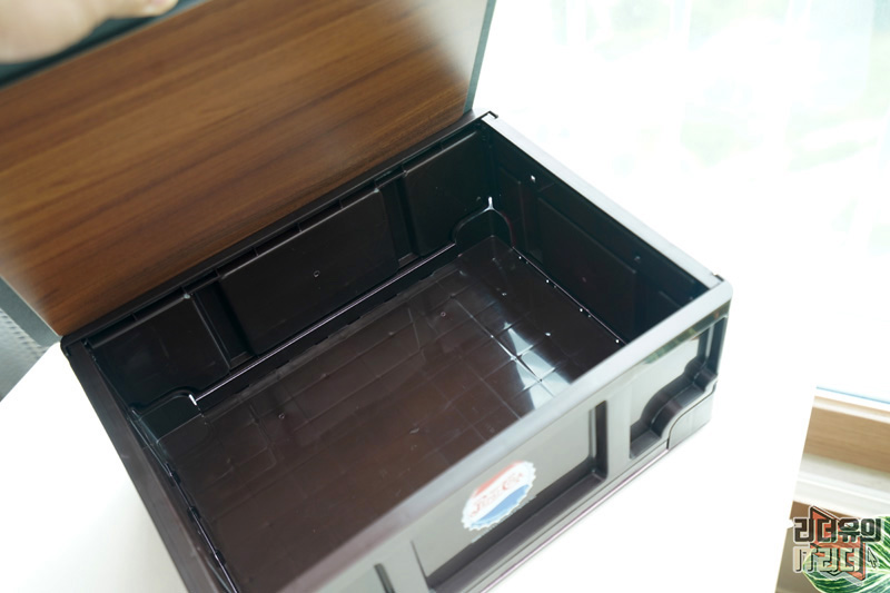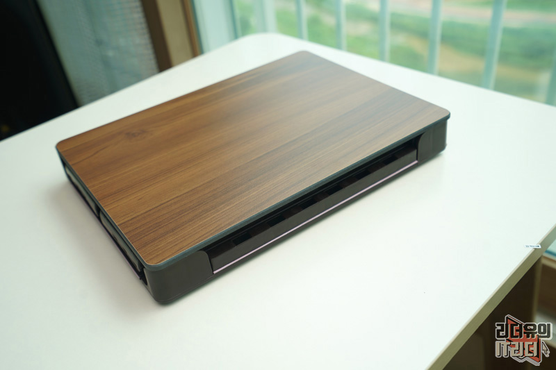 일단 위에서 보는 느낌은 고급스럽습니다. 나무 같은 느낌으로 잘 만든 플라스틱 입니다.