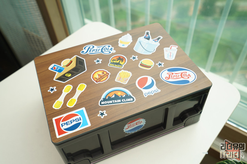 덮개를 덮으면 이렇게 사용할 수 있습니다. 펩시 로고가 있어 나름 브랜드 매력을 살리고 있지만 고급스러운 느낌은 아닙니다.