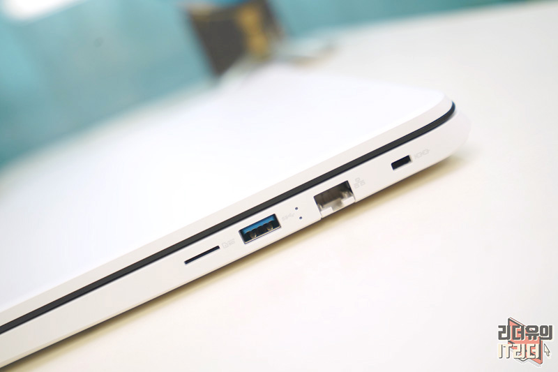 오른쪽면에는 캔싱턴락, RJ45 이더넷 단자, USB 3.0 단자, Micro SD 슬롯이 있고