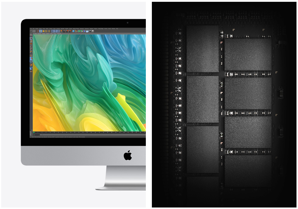그리고 27형 아이맥은 이전 세대보다 2배 더 많은 128GB RAM (2666MHz) 을 구성할 수 있습니다. 포토샵 같은 경우 RAM 용량이 많으면 많을수록 좋은데요. 최대 2배 빠른 속도로 처리가 가능하니 이런 변화도 주목해 봐야 합니다.