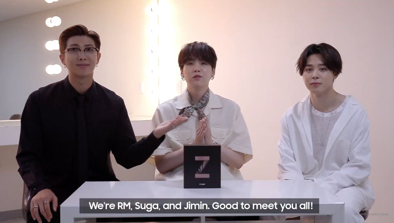 첫번째 승부수는 BTS의 등장입니다. BTS가 갤럭시Z 폴드2를 개봉하면서 사용 모습을 보여줬습니다. 글로벌 팬들에게 확실한 임팩트를 남기는 장면입니다.
