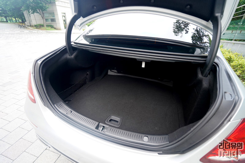 벤츠 E클래스 트렁크 공간입니다. 안쪽으로 깊숙하게 되어 있고 여유로운 공간을 확인할 수 있습니다.