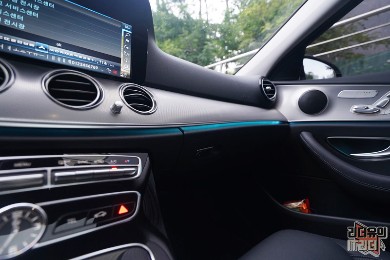 이 차의 경우 벤츠 E클래스 e300 기본 모델이라 클러스터 화면이 아날로그 입니다. 하지만 그 나름대로 디자인 경쟁력 있고 풀 디지털 클러스터를 적용하면 더욱 미래를 달리는 벤츠 E클래스 실내 감성을 느낄 수 있습니다.