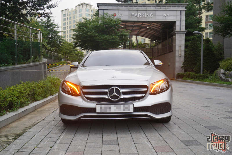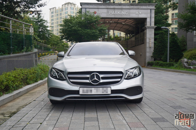 벤츠 E클래스 e300 아방가르드 전면 모습입니다. 전면 디자인은 군더더기 없는 깔끔한 디자인 매력을 보여주고 있습니다.