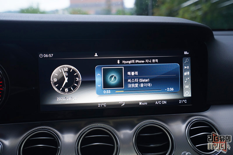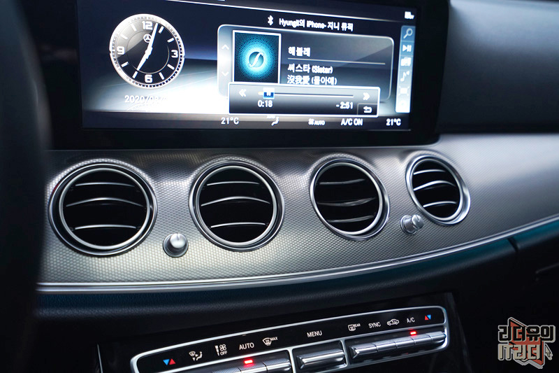 이 차의 경우 벤츠 E클래스 e300 기본 모델이라 클러스터 화면이 아날로그 입니다. 하지만 그 나름대로 디자인 경쟁력 있고 풀 디지털 클러스터를 적용하면 더욱 미래를 달리는 벤츠 E클래스 실내 감성을 느낄 수 있습니다.