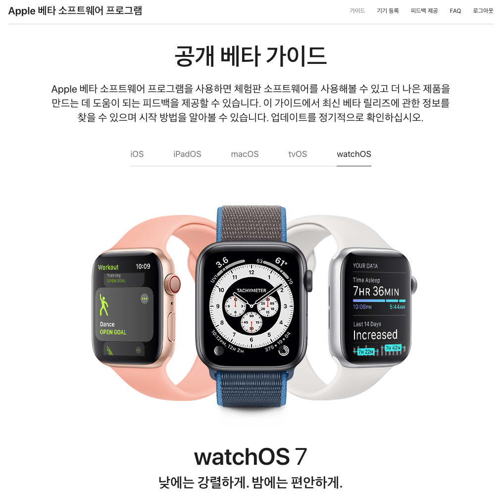 애플 베타 소프트웨어 프로그램 사이트 - watchOS 7