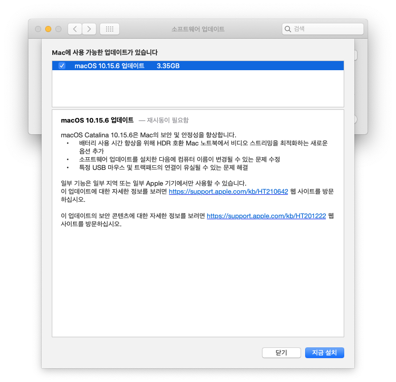 그리고 소프트웨어 업데이트를 설치한 다음에 컴퓨터 이름이 변경될 수 있는 문제 수정과 특정 USB 마우스 및 트랙패드의 연결이 유시될 수 있는 문제가 해결되었습니다.