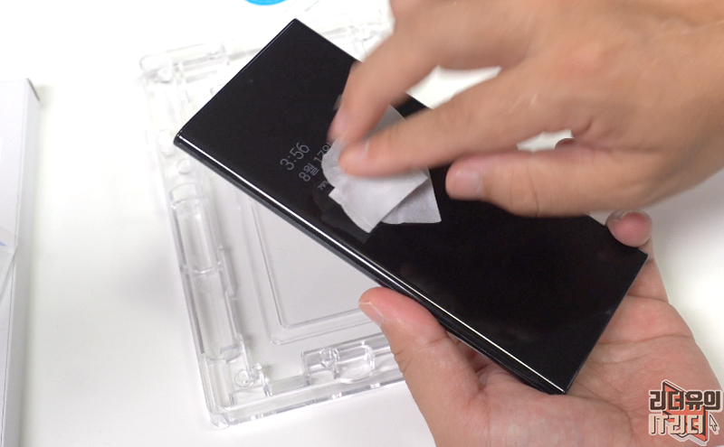 기본적으로 붙어 있는 필름은 떼어내고 혹시나 먼지가 붙어 있을지 모르니 동봉된 알콤솜으로 깨끗이 닦아 줍니다.