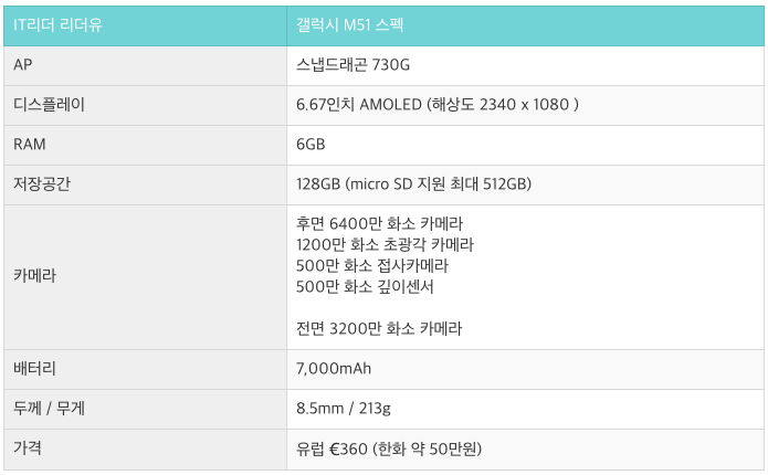 갤럭시 M51 스펙 어때?