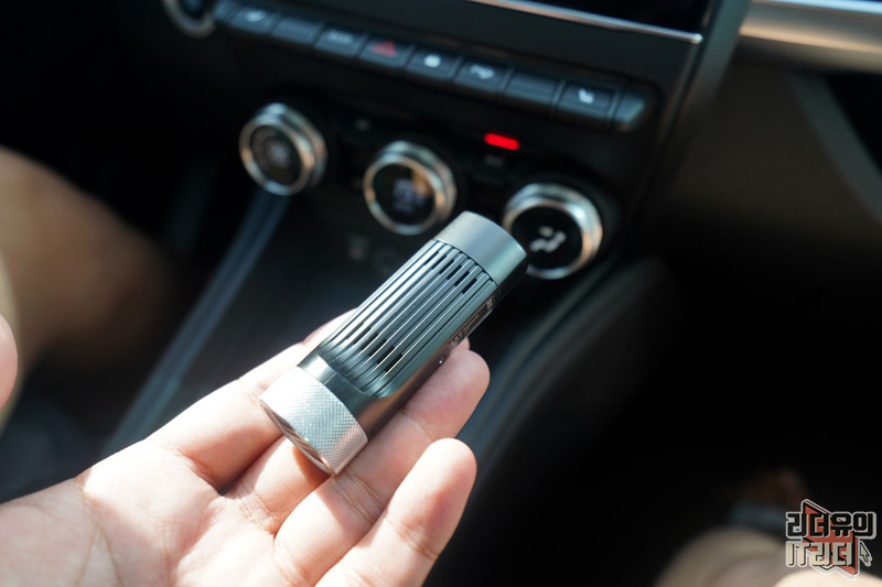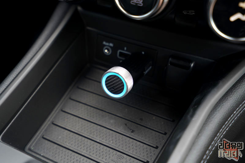 차에 연결한 모습입니다. 간단합니다. 따로 설치할 필요도 없고 케이블이 필요한 것도 아니라서 깔끔한 장착이 가능합니다. 그리고 불빛이 들어와 연결이 되었음을 알 수 있습니다.