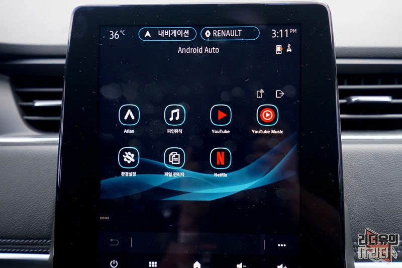 태플릿PC 처럼 다양한 아이콘을 볼 수 있는 화면으로 나갑니다. 기본적으로 아틀란, 파인뮤직, 유튜브, 유튜브 뮤직, 환경설정, 파일관리자, 넷플릭스를 볼 수 있습니다. 차에서 컨텐츠를 보고 싶어하던 분들에게 좋은 대안이 될 수 있습니다.