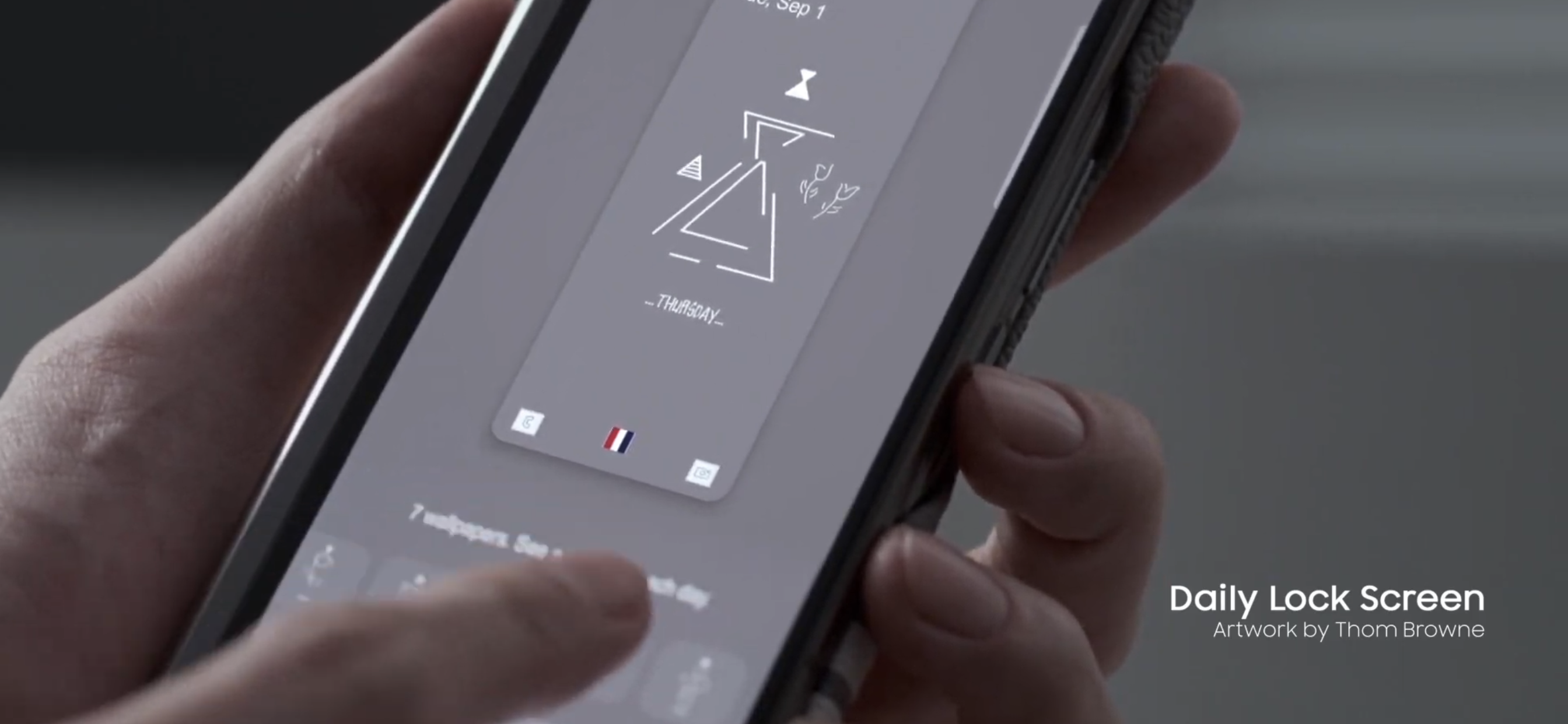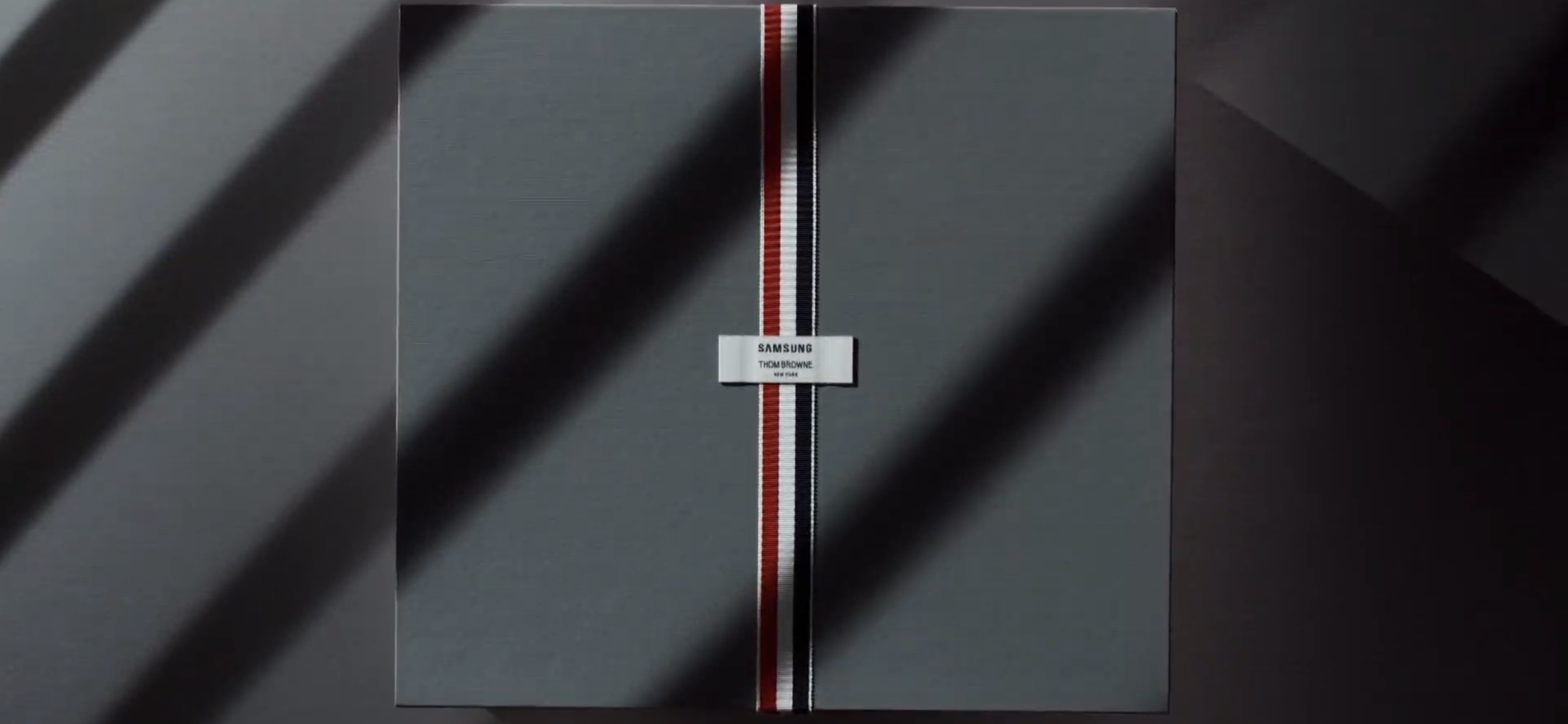 갤럭시Z 폴드2 톰브라운 에디션도 출시를 알렸습니다. 패키지부터 톰브라운의 시그니처 수트 컬러 회색을 베이스로 했고 빨간색, 흰색, 파란색 패턴의 섬유 소재로 톰브라운을 상징하고 있습니다.