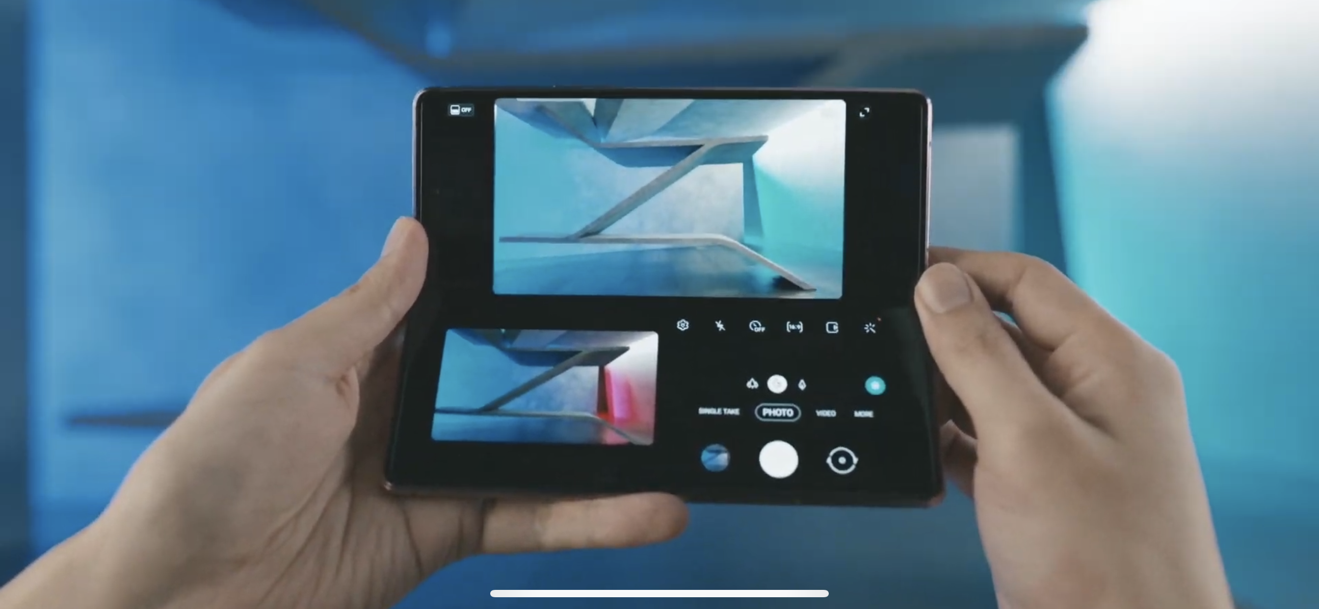갤럭시Z 폴드2는 대화면을 활용한 다양한 사용씬으로 왜 구입해야 하는지 보여줬습니다. 특히 카메라 기능에서 많은 변화를 느낄 수 있는데요. 위에서는 피사체를 보고 아래에서는 찍을 사진을 보는 방식으로 대화면을 활용한 사진 촬영이 가능하고