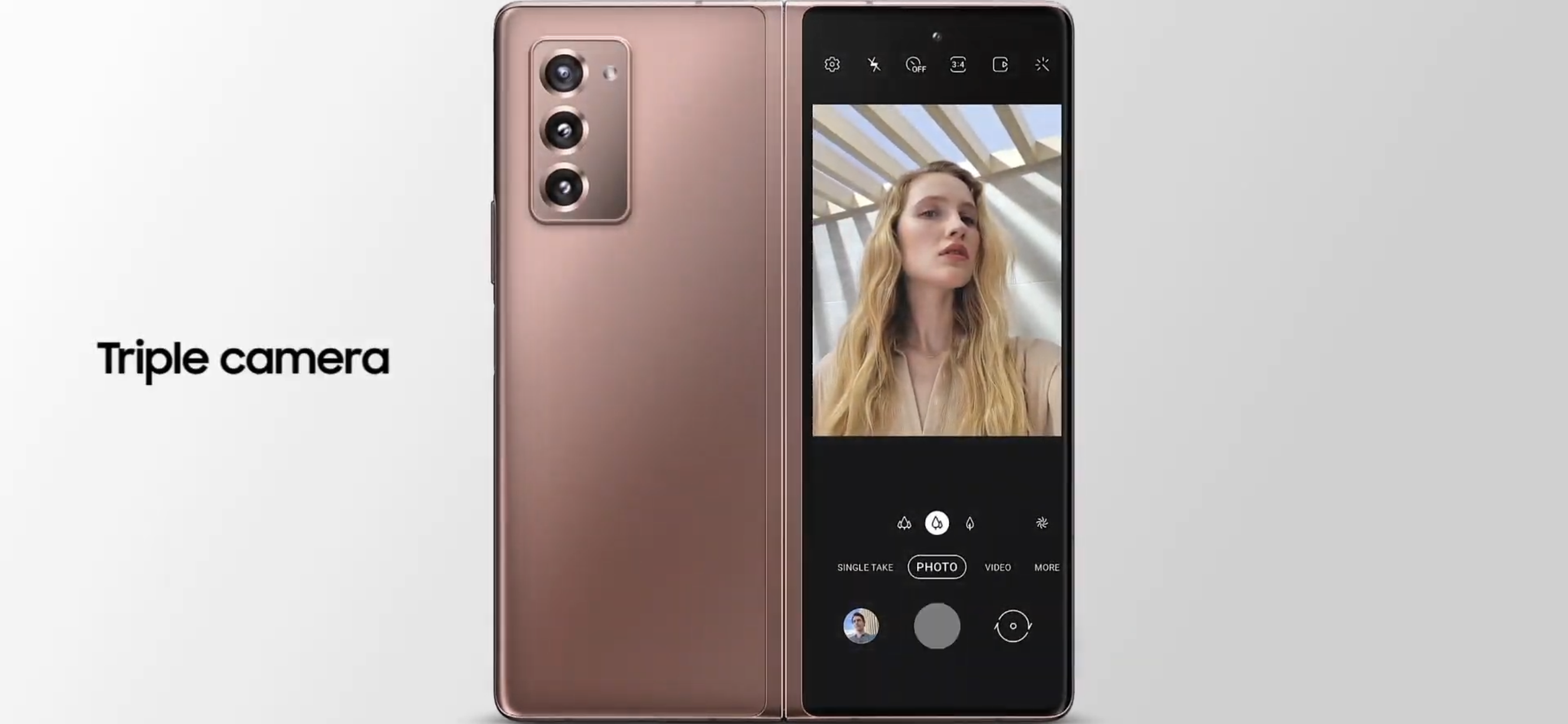그리고 후면 트리플 카메라를 전면 카메라 처럼 사용하는 매력도 제시했습니다. 양쪽으로 다 화면이 있기 때문에 가능한 씬인데요. 셀피도 고화질로 촬영할 수 있습니다.
