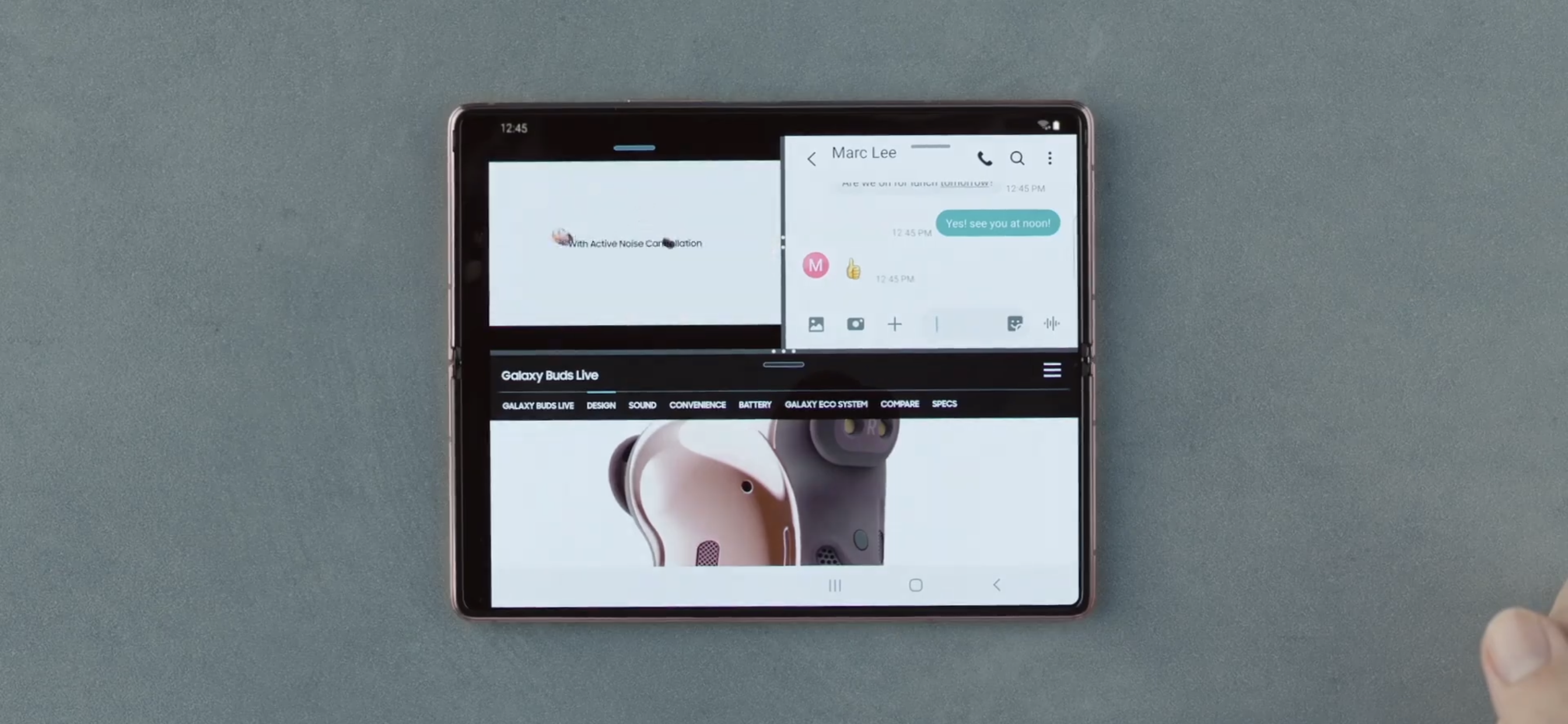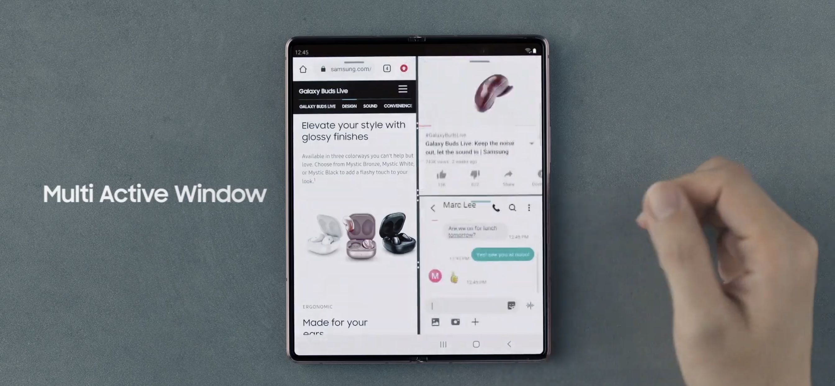 갤럭시Z 폴드2는 화면이 크기 때문에 3가지 앱을 동시에 볼 수 있는 멀티액티브 윈도우 기능을 제시했습니다. 다양한 화면 스타일로 볼 수 있어 사용자가 원하는 형태로 볼 수 있습니다.
