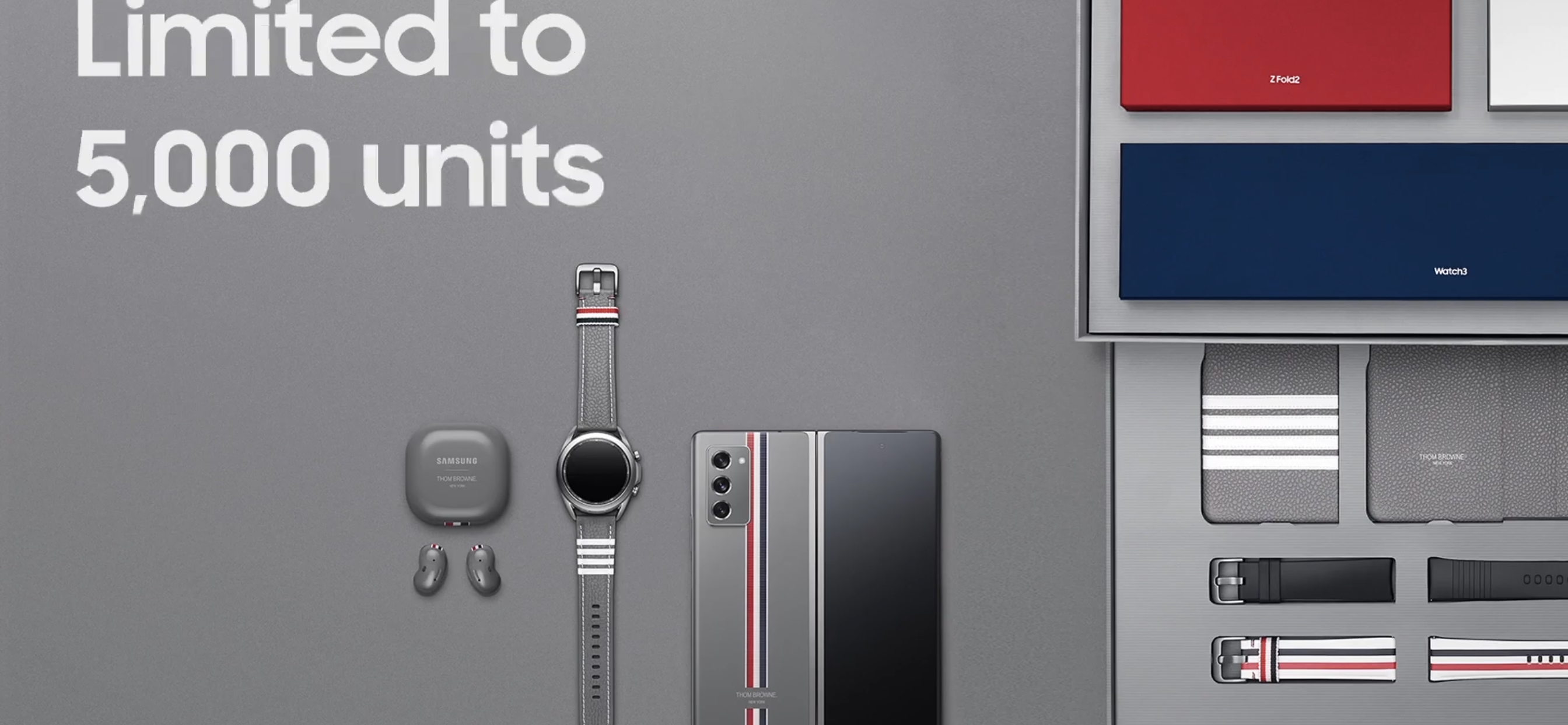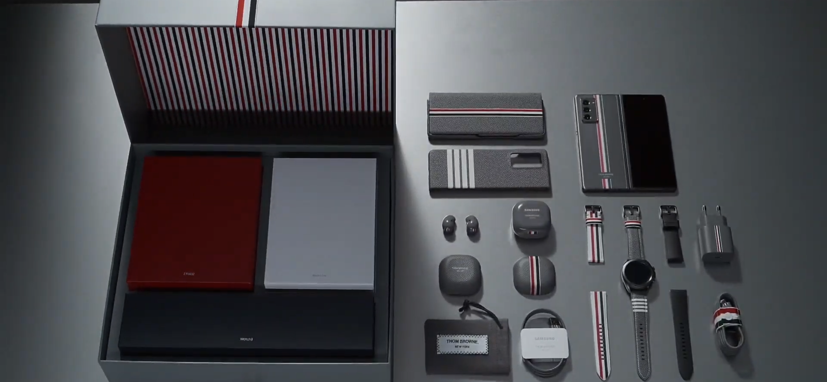 갤럭시Z 폴드2 톰브라운 에디션도 출시를 알렸습니다. 패키지부터 톰브라운의 시그니처 수트 컬러 회색을 베이스로 했고 빨간색, 흰색, 파란색 패턴의 섬유 소재로 톰브라운을 상징하고 있습니다.