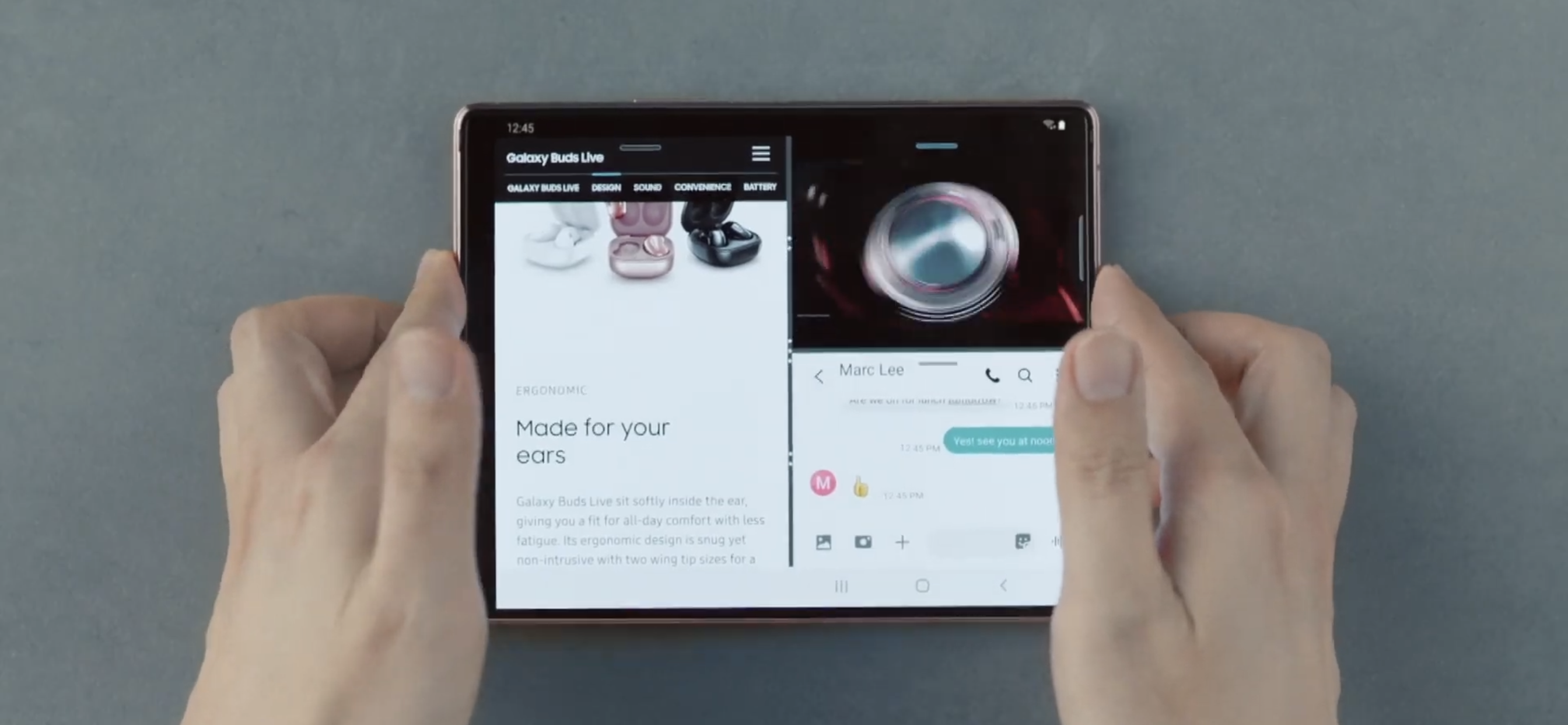 갤럭시Z 폴드2는 화면이 크기 때문에 3가지 앱을 동시에 볼 수 있는 멀티액티브 윈도우 기능을 제시했습니다. 다양한 화면 스타일로 볼 수 있어 사용자가 원하는 형태로 볼 수 있습니다.