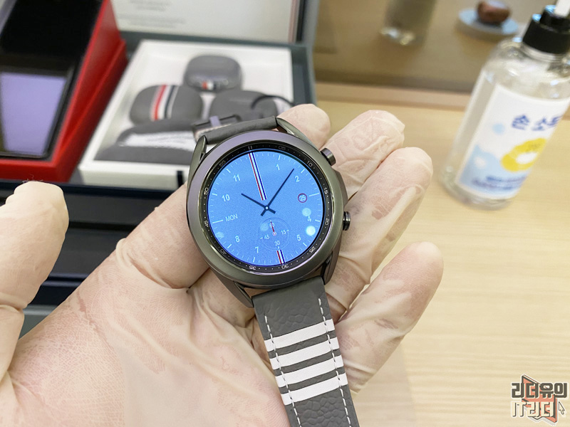 갤럭시워치3 톰브라운 에디션 입니다. 톰브라운 메인 컬러인 회색으로 바디와 밴드가 준비되어 있고 워치 페이스도 톰브라운 에디션 테마로 되어 있습니다. 다양한 워치 페이스가 있으니 기분따라 취향 따라 선택하시면 됩니다.