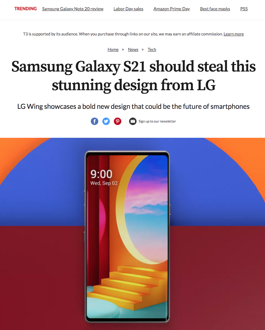 영국 IT 매체 T3 LG 윙 디자인으로 삼성에게 일침