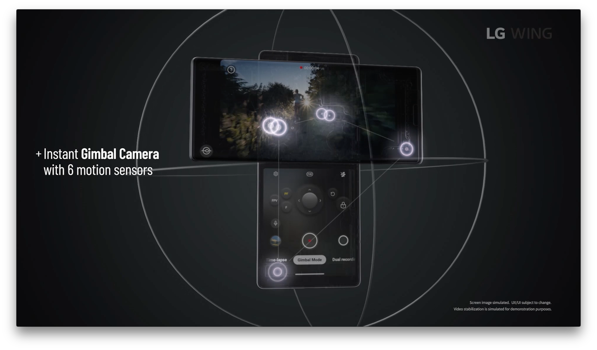 그 이유는 LG 윙에는 짐벌 모드라는 특별한 기능을 넣었기 때문입니다. 화면을 돌린 이유를 확실히 보여준 기능으로 별도의 짐벌 없이 자체에서 짐벌 활용이 가능해 흔들림 없는 영상을 찍기에 좋습니다. 잘만 된다면 정말 대박이라 할 수 있는 기능입니다.