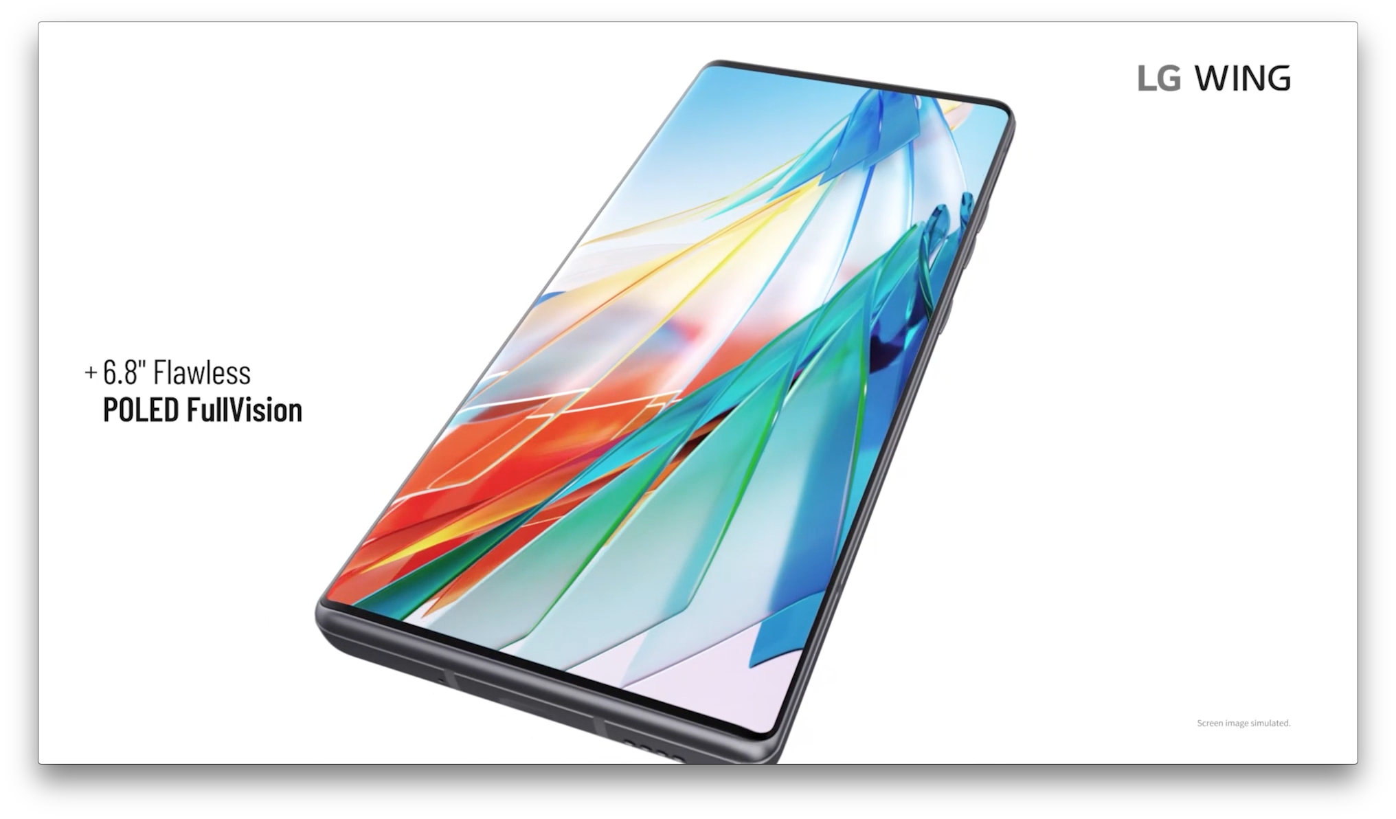 그리고 LG 윙은 디자인에서도 깔끔한 매력을 느낄 수 있습니다. 카메라 영역이 없는 6.8형 POLED 풀비전 디스플레이로 화면을 보기에 더 없이 매력적인 가치를 담았습니다.