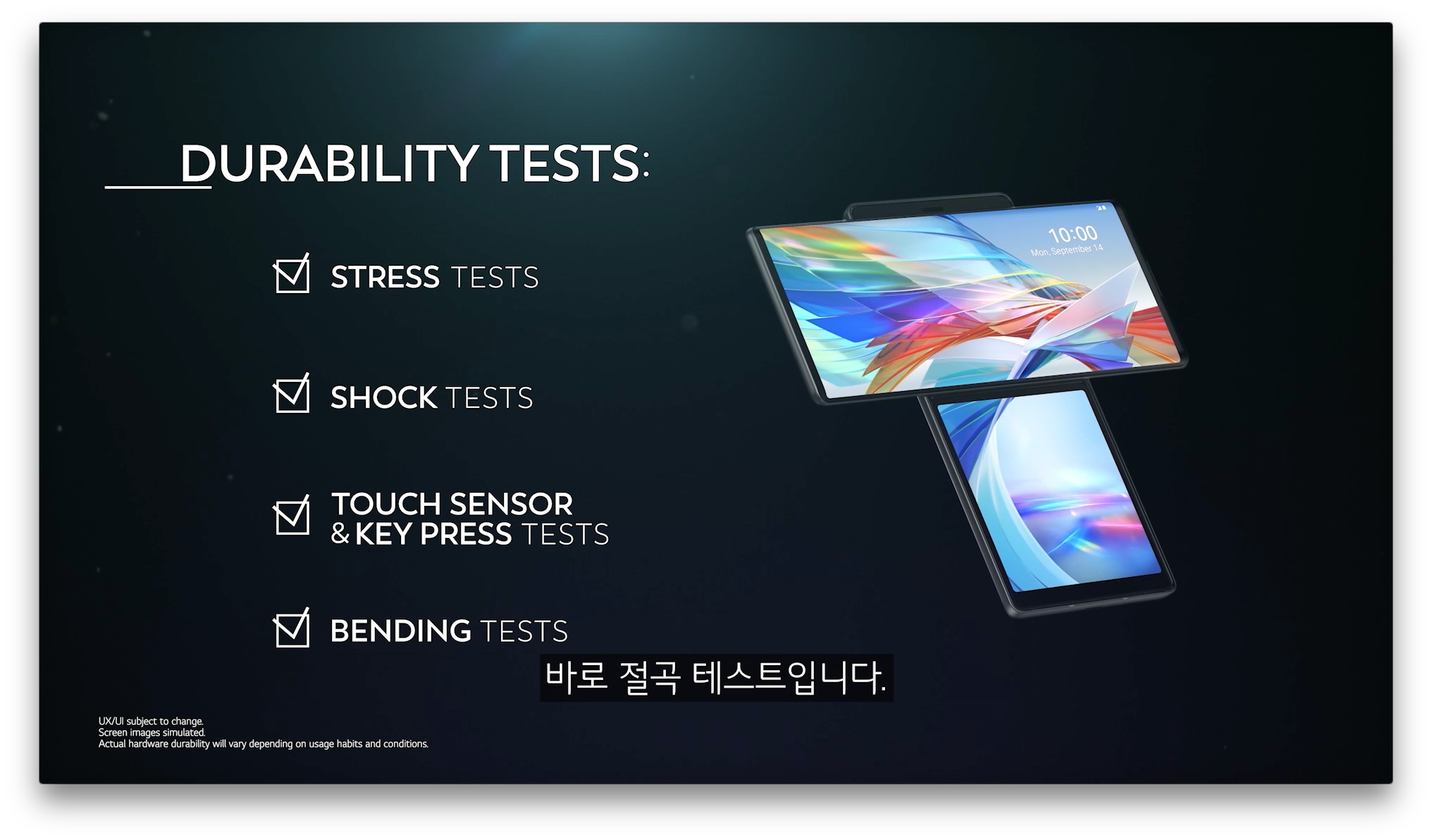 LG전자는 사람들이 걱정하고 있는 LG 윙 내구성에 대한 답도 전해 줬습니다.