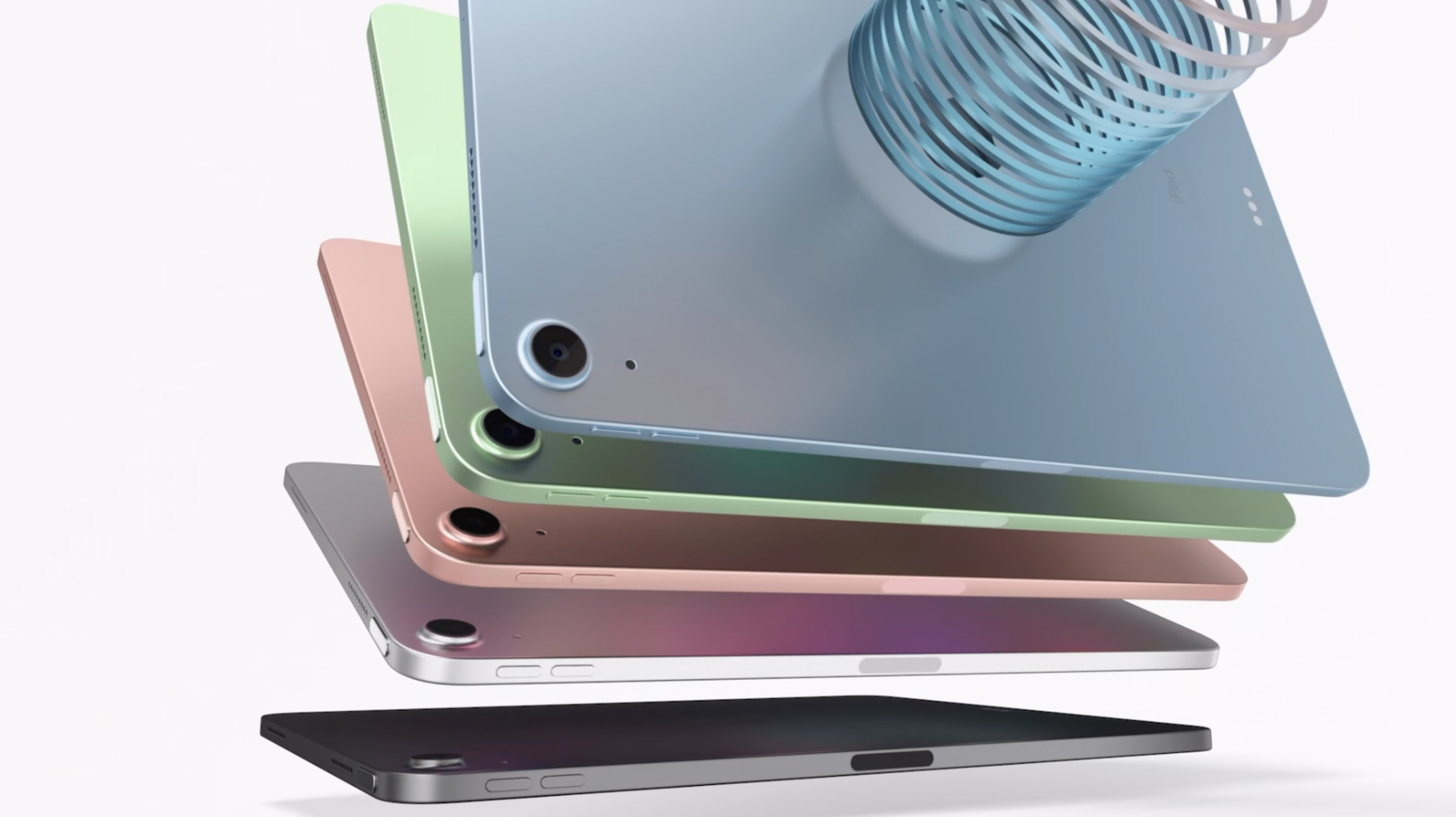 아이패드에서도 이제 산뜻한 컬러의 매력을 만날 수 있습니다. 아이패드 에어 4세대에서는 실버, 스페이스 그레이, 로즈 골드, 그린, 스카이 블루 색상으로 선택의 폭이 넓어졌습니다.