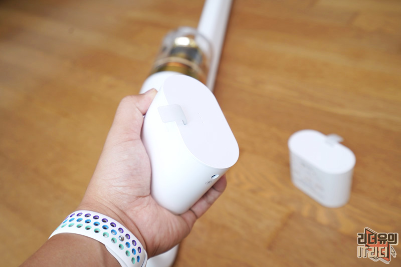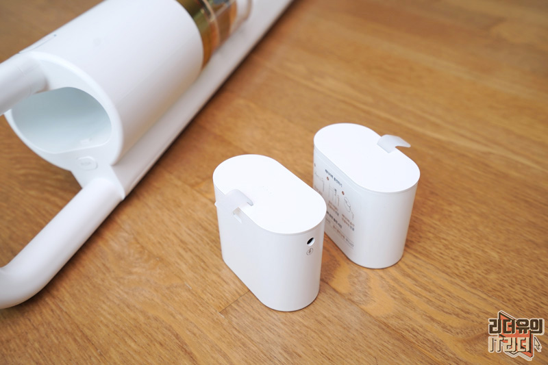 깔끔하게 장착이 된 모습입니다. 배터리 2개라 교체하면서 사용할 수 있어서 좋습니다. 청소 공간이 넓다면 여유분의 배터리를 구매해서 사용하면 될 것 같습니다.