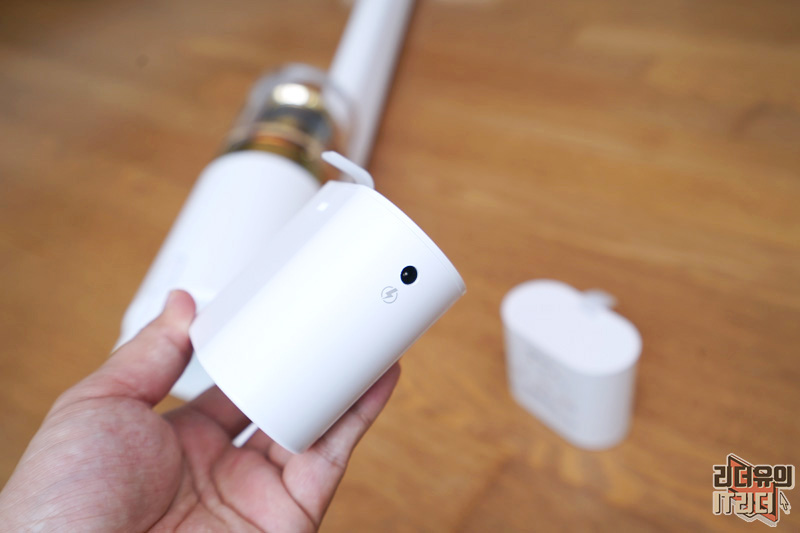 헤파 필터 아래쪽에는 어댑터 단자가 있습니다. 배터리를 장착한 상태에서 충전도 가능하고 배터리를 분리해서 충전도 가능합니다.